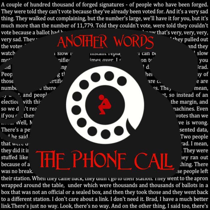 More bigly! | ANOTHER WORDS - THE PHONECALL Now with additional source audio from the Orange Lump added to the musical pot-pourri. | 2022 | Another Words - the Phonecall |